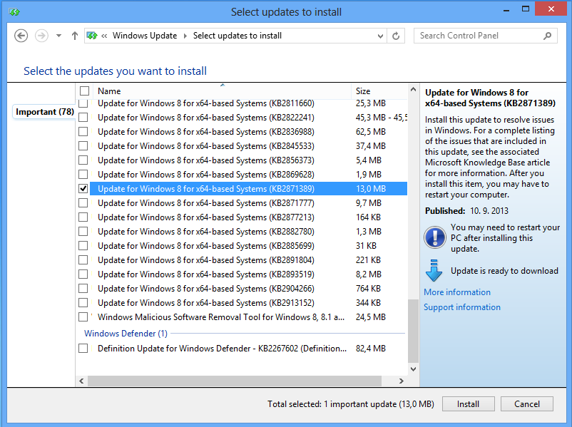 Je to KB2871389. Z uvedeného odkazu ji můžete stáhnout, nebo se k ní dostanete přes Windows Update.