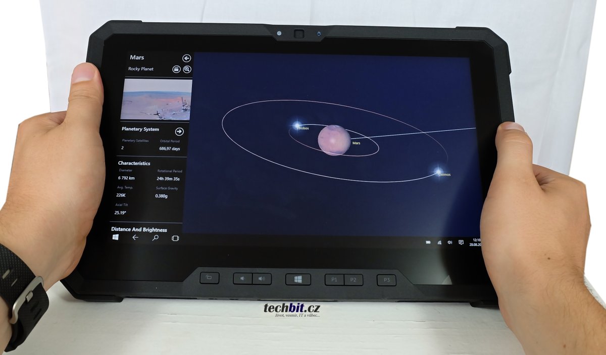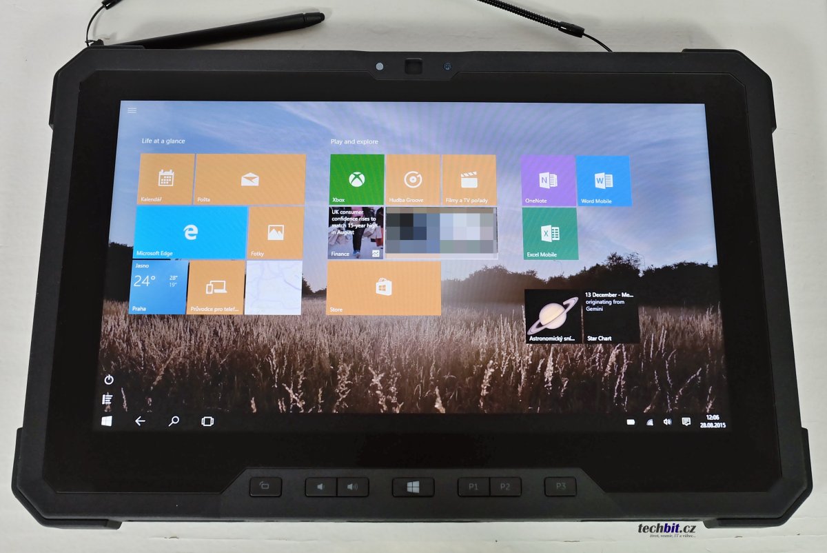 Tablet je určen opravdu do extrémních podmínek, zvládne pracovat v teplotách kolem mínus 30°C a při této teplotě by ovládání tabletu bez rukavic bylo celkem nepříjemné. Tak ovládání v rukavicích je úplně v pohodě. Rukavice jsem testoval, teplotu ne :-).