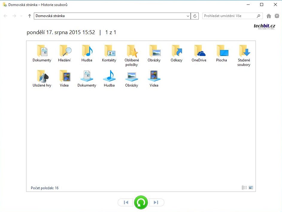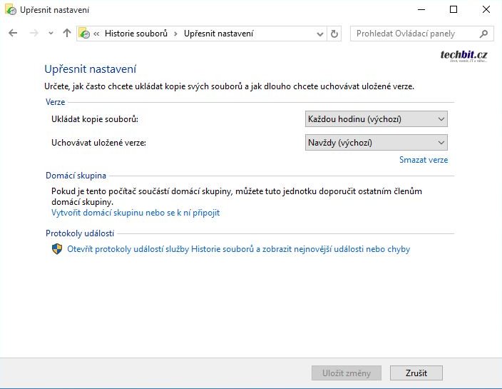 Historie souborů je další ze způsobů zálohování, co Windows 10 nabízejí. Tuto funkci známe z Windows 8. Funguje to jednoduše – ukládají se kopie vašich souborů do určeného umístění. Kdykoliv se tak dá vrátit k datům, která se poškodila nebo smazala. Výhodou je ukládání několika verzí souborů. Nastavení je opět přes Win+Q a vyhledat Historie Souborů. Vybrat vhodnou jednotku a Zapnout. Lze přidat i umístění v síti, vyloučit některé složky, nastavit jak často se kopie souborů budou ukládat a jak dlouho se mají uchovávat různé verze souborů. Při obnovování se soubory procházejí podobně jako v průzkumníku a lze si určit jakou verzi souboru obnovit. Také zda obnovit do původního umístění nebo jinam.