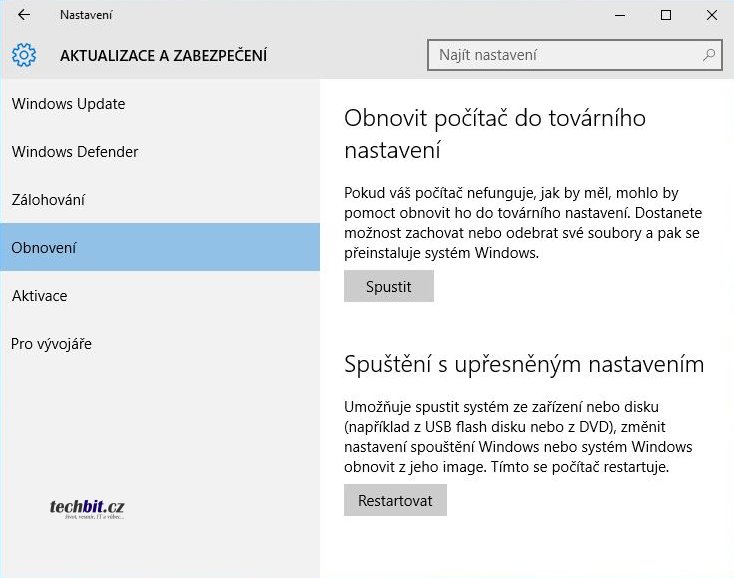 Obnovu systému je spolehlivější neprovádět přímo z Windows, ale spustit Windows ve speciálním režimu. Dostanete se tam takto: Spustit Nastavení > Aktualizace a zabezpečení > Obnovení > Spuštění s upřesněným nastavením a Restartovat. Až se systém restartuje je další cesta Odstranit potíže > Upřesnit možnosti a pak dle toho, co potřebujete. Obnovení Systému je pro návrat k některému z předchozích bodů obnovení (pokud je tato funkce zapnutá). Obnovení z bitové kopie systému umožní obnovu systému ze zálohy, která bitovou kopii obsahuje.