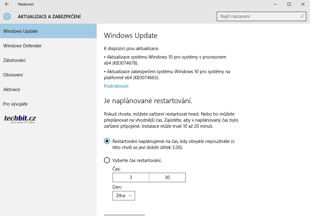 Windows Update – Ten se přesunul z ovládacích panelů do nastavení. Podrobněji lze naplánovat, kdy se má systém po aktualizacích restartovat. Uživatelé edice Windows 10 Home nebudou moci instalace aktualizací úplně zakázat.