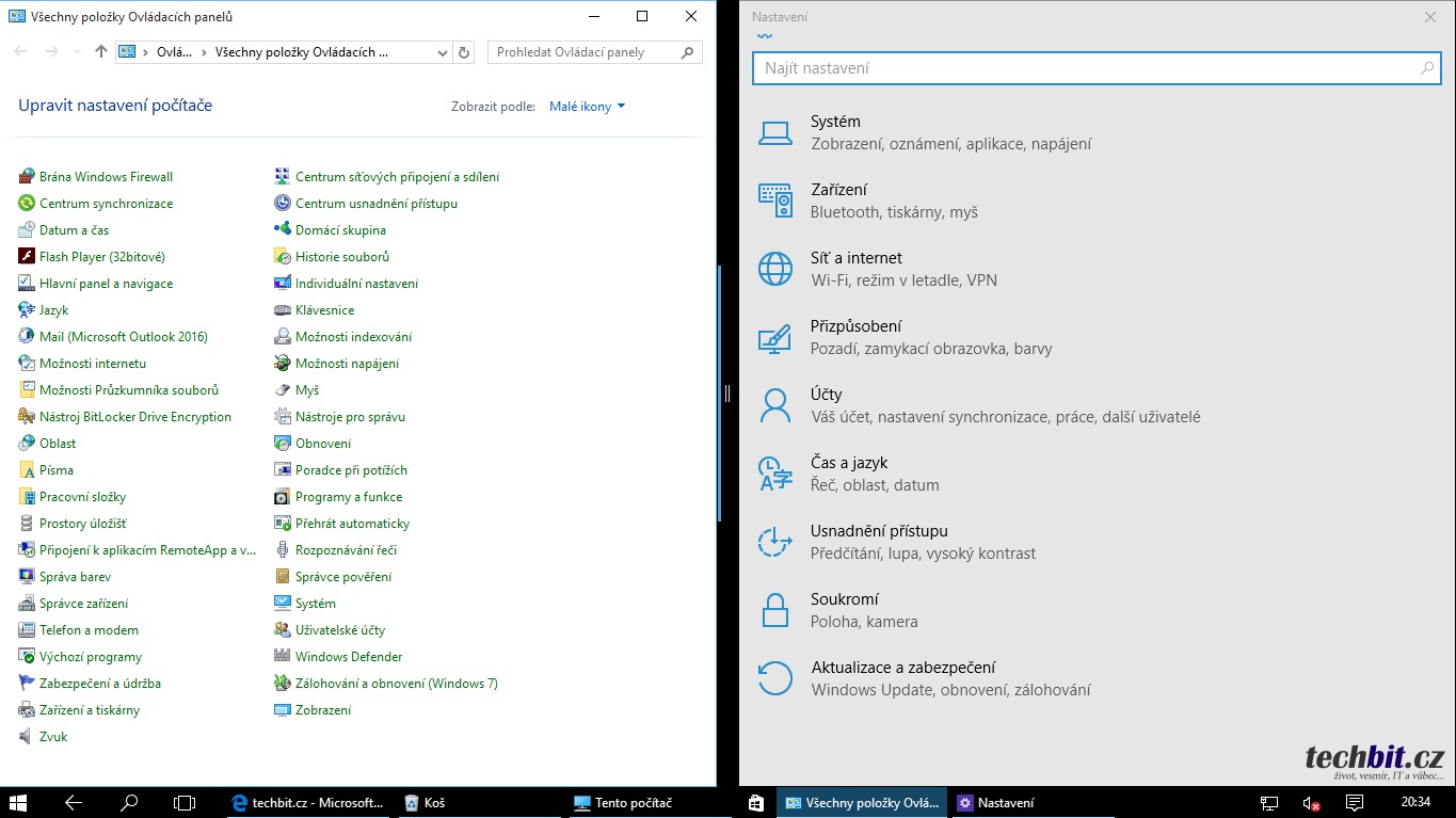 Ovládací panely a Nastavení – Klasické ovládací panely jsou ochuzené o některé položky, které jsou přesunuty do nového nastavení. Jinak zůstávají ovládací panely téměř beze změny. Nové rozhraní nastavení je proti Windows 8 kompletně přepracované, zorientování se ale nedá velkou práci. Navíc pro plánované Windows 10 Mobile bude rozhraní nastavení stejné.