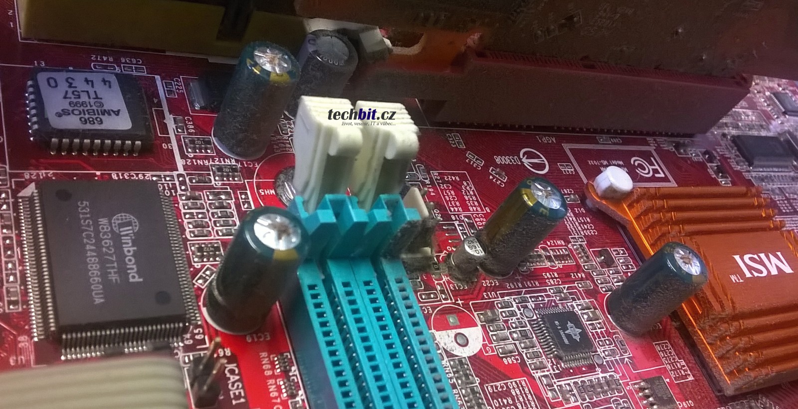 - Nestabilní chování stolního počítače, nahodilé pády systému nebo se počítač zapíná až na několikátý pokus. Zkuste se podívat dovnitř počítače jestli kondenzátory na základní desce nevypadají nějak podobně jako na fotce (nafouknuté kondenzátory).