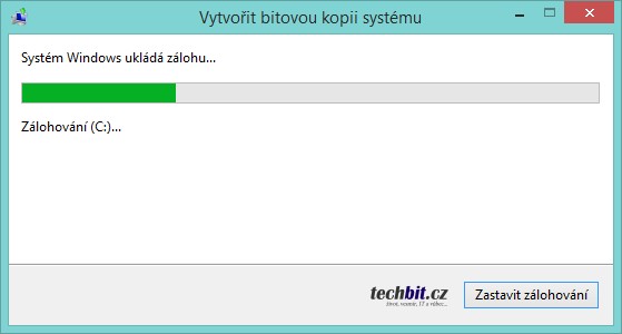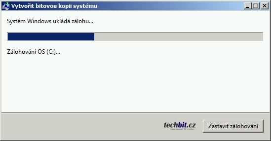 Otevřít ovládací panely (Start > Ovládací panely) a najít položku Zálohování a obnovení. Otevřít průvodce Vytvořit bitovou kopii systému.