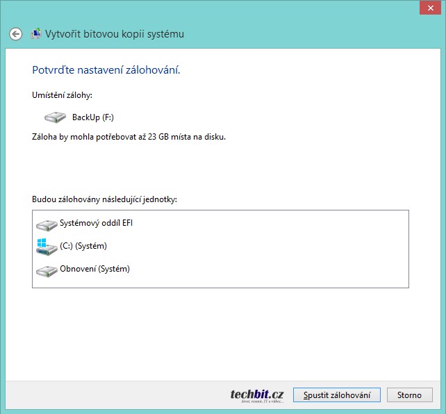 Zvolit si umístění zálohy, proklikat průvodce a spustit zálohování. Pak už jen vyčkat na úspěšné dokončení zálohy. Na konci zálohování ještě může vyskočit hláška o možnosti vytvoření disku pro opravu systému. Pokud nemáte instalační médium Windows 7 SP1, tak doporučuji disk pro opravu vytvořit.