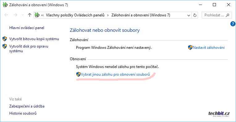 Nebo obnovení z bitové kopie systému pomocí nástroje Záloha a obnovení (Windows 7), který je překvapivě součástí systému Windows 10 (najdete v ovládacích panelech).