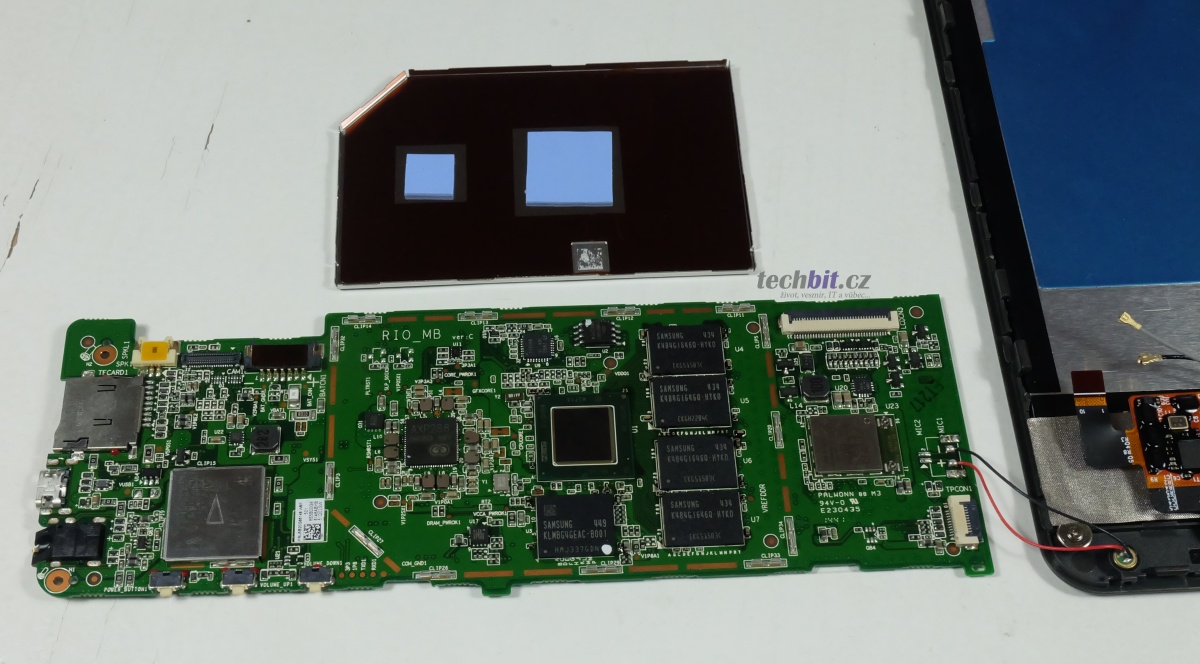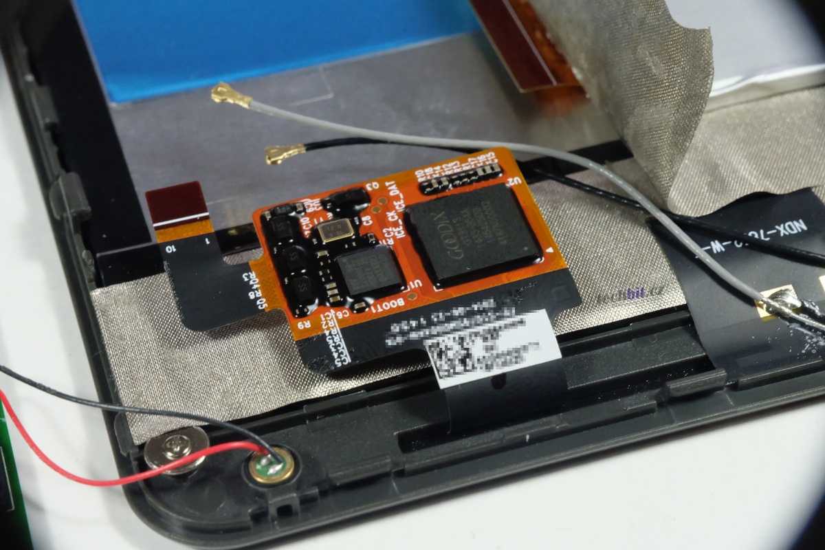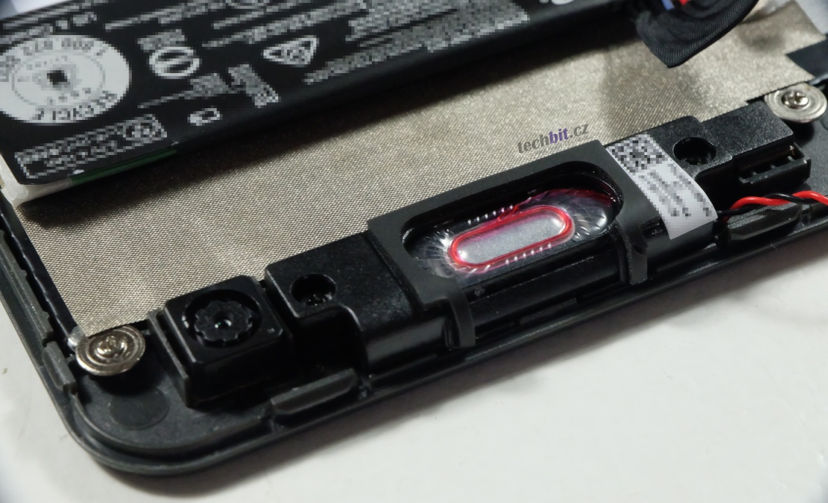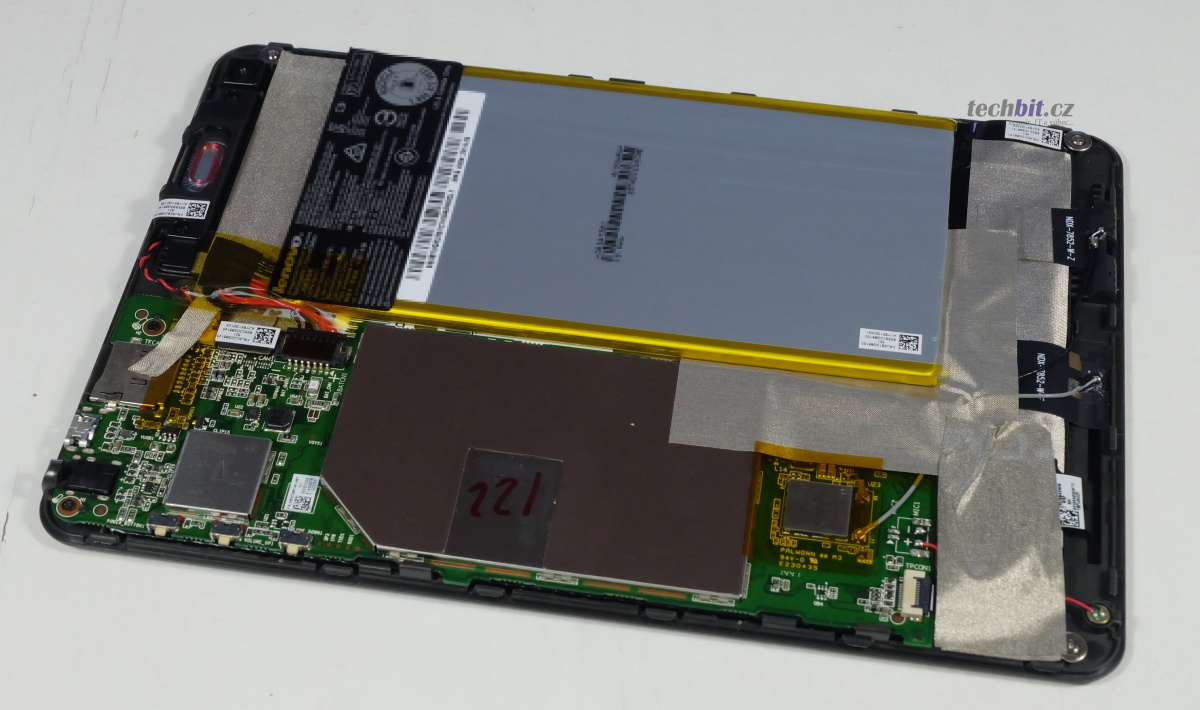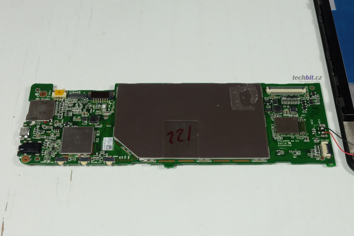 Tak se mrkneme, jak Miix 3 8″ vypadá vevnitř. Zadní kryt lze odejmou snadno, stačí malá pomůcka. Pak jen dva šroubky, trocha opatrnosti při odstraňování lepicí pásky a základní deska může jít ven.