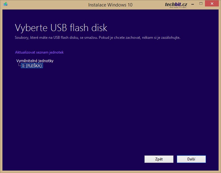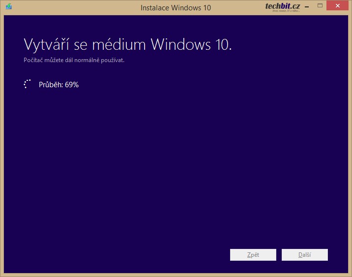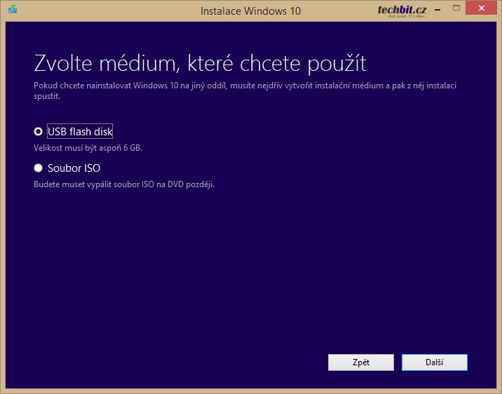 Nástroj pro stažení vytvoření instalačního média nazdete zde.