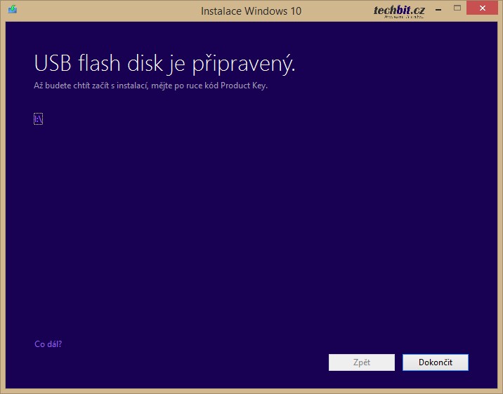 Teď máte vytvořený instalační disk použitelný pro čistou instalaci Windows 10 nebo také pro upgrade z Windows 7/8.