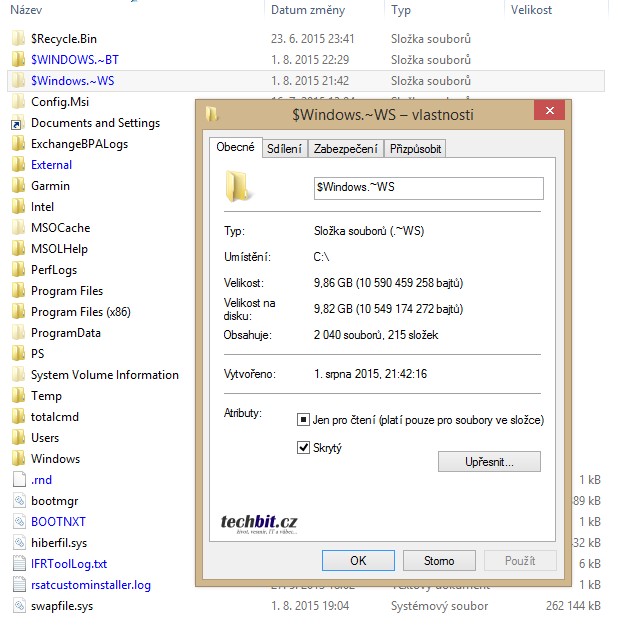 Po stažení a vytvoření média zůstanou na systémovém disku (ve skryté složce C:\$Windows.~WS) ještě stažená data, která můžete ručně odstranit a uvolnit tak drahocenné místo.