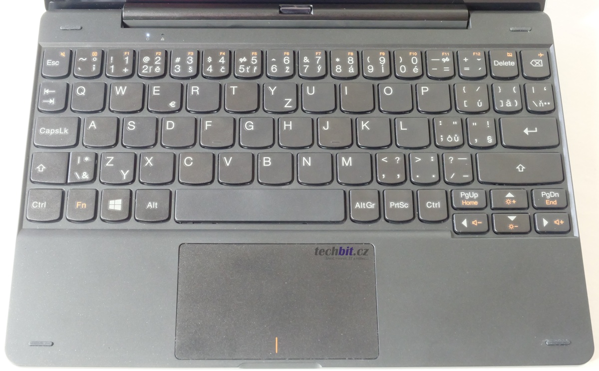 Tablet Lenovo Miix 300 mě na první pohled hodně zaujal. Samotný tablet vzhledem a zpracováním nepůsobí vůbec jako levné zařízení. Pevný rámeček, tablet se nekroutí a je z příjemného materiálu. Klávesnice také vypadá dobře, ale práce s ní mi úplně nevyhovuje. Klávesy jsou velmi mělké, dělám hodně nechtěných stisknutí. Při delší práci by si na to nejspíš člověk zvykl. Co je naopak super, je připojování tabletu ke klávesnicí – jde to velmi snadno a zlehka. Stejně tak odpojení po stisku uvolňovacího tlačítka.