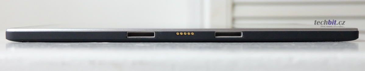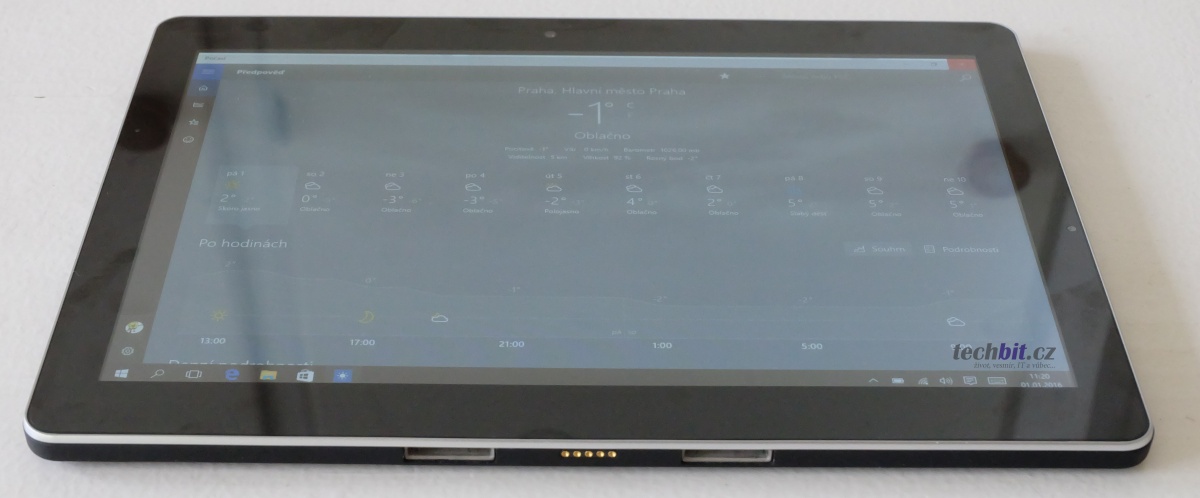 Co mě tak trochu zaráží, je změna nabíjení. Již to není přes micro USB port, ale přes specifický konektor pro nabíjení. Takže když si zapomenete kabel pro nabíjení, nemůžete použít nějaký jiný, univerzální, to je škoda. Trochu jsem potrápil baterii – při maximálním zatížení a jasu displeje vydržel pracovat „jen“ 3,5 hodiny. Při minimálním jasu a zatížení vydržel krásných 13 hodin. Pro běžnou práci mi vychází výdrž baterie přibližně na 7-9 hodin. To je velmi slušné. Samozřejmě se musí počítat s tím, že i jen mírné zvýšení jasu displeje znamená rapidní zkrácení výdrže baterie. Výdrž baterie jsem testoval s připojenou klávesnicí, odběr klávesnice bude celkem zanedbatelný. Ale to nabíjení – prázdná baterie se do plné kapacity může nabíjet až 3,5 hodiny.