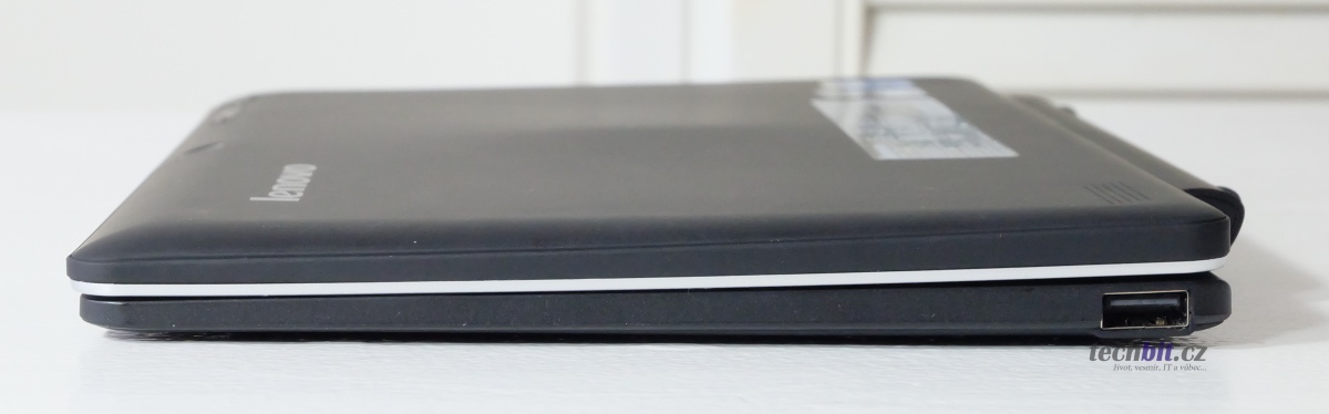 Na druhý pohled, když je tablet s připojenou klávesnicí zavřený. Jako notebook. Je to pěkný cvalík, tloušťka klávesnice je téměř stejná jako tloušťka tabletu. U předchozí generace Miix 3 10″ byla klávesnice tenká, ale zase bylo nepohodlné dokování pomocí pouzdra. Tablet s klávesnicí je relativně těžký (asi 1,2Kg) – částečně je to dáno tím, že klávesnice v sobě musí mít závaží. Jinak by se tablet v klávesnici převažoval. Opět rozdíl proti předchozí generaci, kdy pouzdro tabletu mělo opěrku. Pohodlněji se mi používá provedení toto provedení s Miix 300.