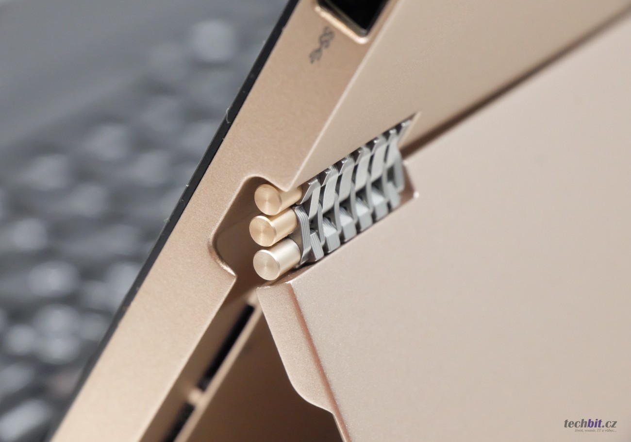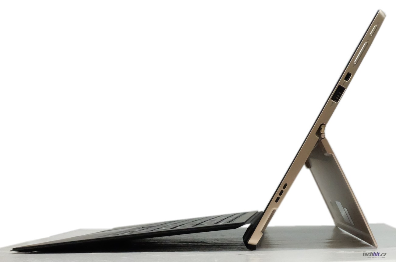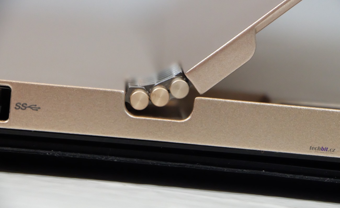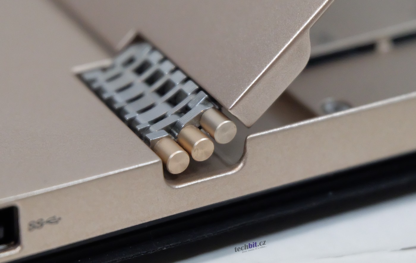 Zajímavě řešen je pant stojánku tabletu. Na webu Lenova píší, že je inspirován páskem hodinek. Možná na tom něco bude. Líbí se mi to a podobný pant je i na dalších produktech od Lenova. Trochu mám obavu, že časem povolí, ale to během pár dní testování neposoudím.