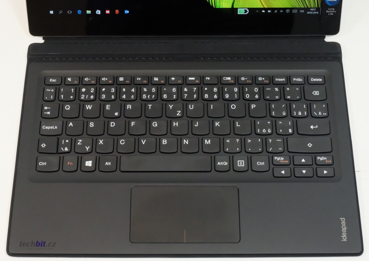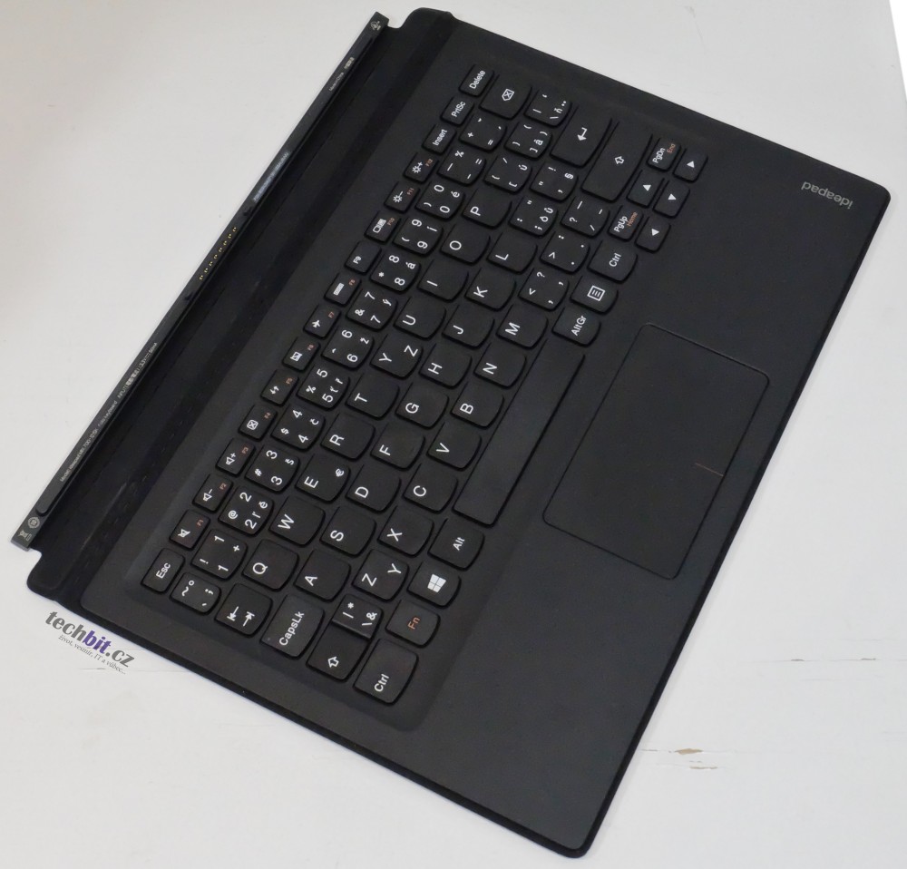 Pro práci s klávesnicí je třeba mít pevnou podložku, zpravidla tedy stůl. Na klíně to prostě jako notebook fungovat nebude :-). Tablet má stojánek, o který se opírá, a klávesnice může být bez zdvihu nebo přichycená pomocí magnetu k tělu tabletu a získat tak mírný sklon. To pro pohodlnější používání. Raději jsem volil variantu bez zdvihu, protože jinak se klávesnice dost prohýbala a používání bylo nepohodlné. Při psaní na klávesnici jsem se velmi často dotknul nechtěně touchpadu a kliknul někam mimo. Tak jsem při psaní musel touchpad deaktivovat. Časem bych si asi zvyknul a dával podvědomě pozor. Nicméně s touchpadem se pracuje pohodlně. O klávesnici to říci nemohu, velmi nízký zdvih kláves (je prostě úzká) a za těch pár dní jsem si na ní nedokázal zvyknout.