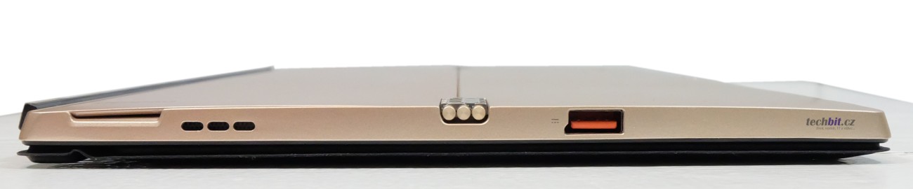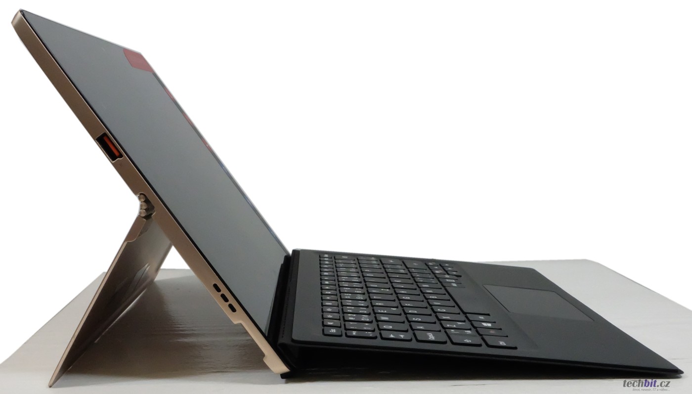 Skvěle funguje automatické přepínání do tablet režimu při odepnutí klávesnice a zpět při připojení klávesnice. Klávesnice drží pomocí magnetu a sedne k tabletu vždy přesně. Při přiklopení klávesnice tablet reaguje a může se tak uspat, vypnout. Podle toho, co se nastaví.