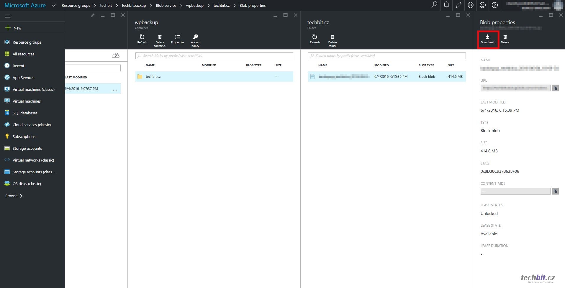 Když bude třeba, zálohy si můžete stáhnout z administrace Azure přímo z webového prohlížeče. Ještě by bylo hezké, kdyby BackWPup uměl zálohy šifrovat, aktuálně to nezvládne. V placené verzi ale ještě pár věcí navíc umí – BackWPup. Šifrování bude ale brzy dostupné na straně Azure – Azure Storage Service Encryption for Data at Rest (Preview).
