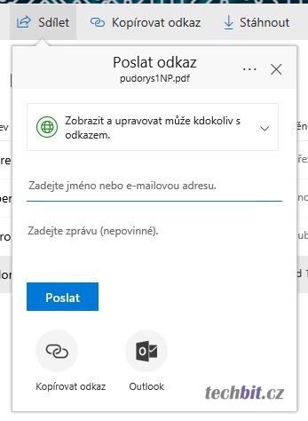 Druhou možnost můžete využít přímo z průzkumníku souborů, pokud používáte synchronizační klient pro OneDrive. V průzkumníku vyberete dokument pro sdílení a kliknete na soubor pravým tlačítkem myši a zvolíte sdílet. Otevře se velmi podobné okno jako v předchozím případě. S tím si již poradíte.