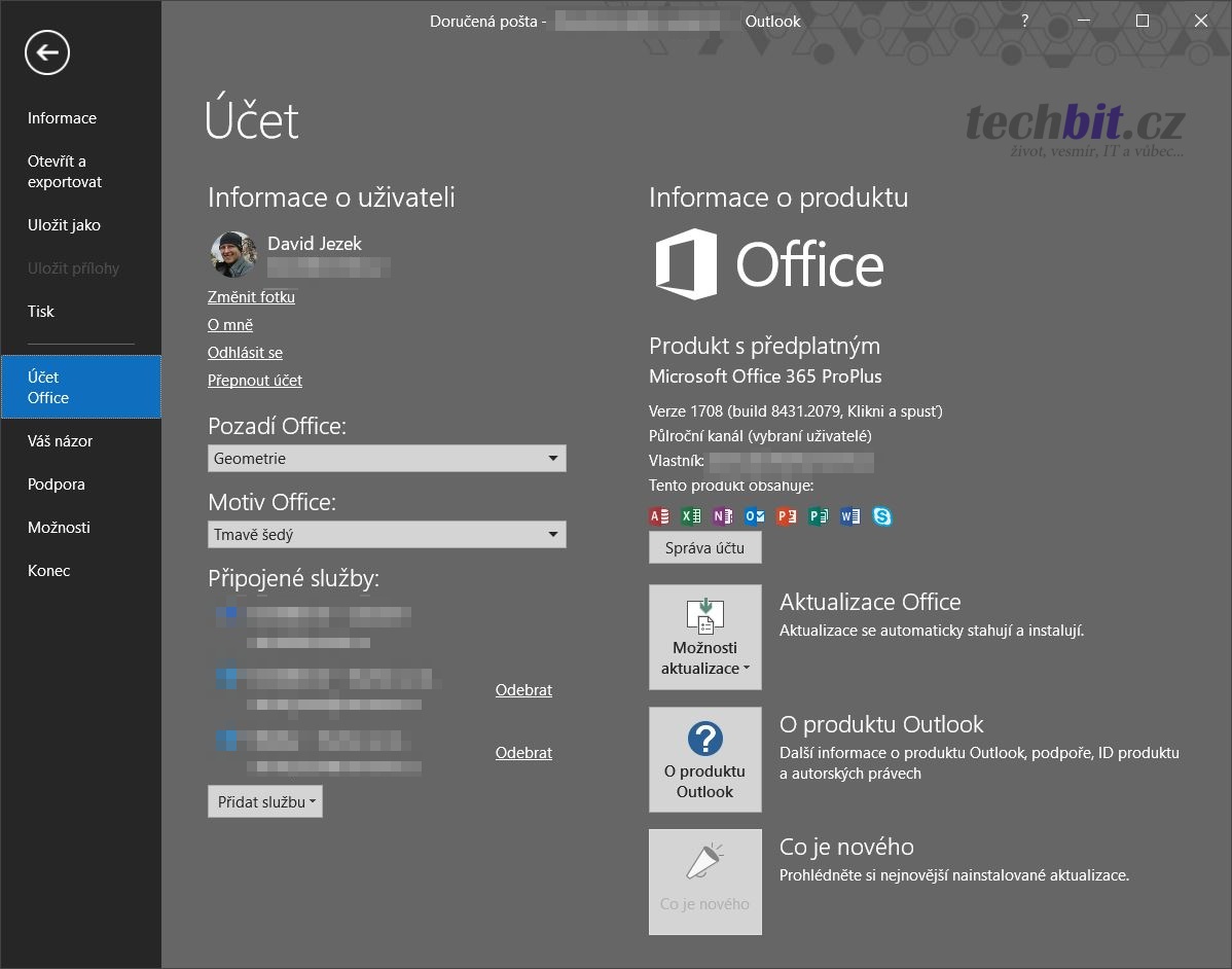 Jak si mírně zpříjemnit práci s Outlookem, ve kterém trávíte tolik času? Zvolte si barevný motiv, který vám bude nejvíce vyhovovat. Změna motivu se netýká jen Outlooku, projeví se v celých Microsoft Office 2016. Nicméně pro práci s Outlookem je změna motivu zásadní, například při tmavém motivu je tato aplikace mnohem přehlednější.