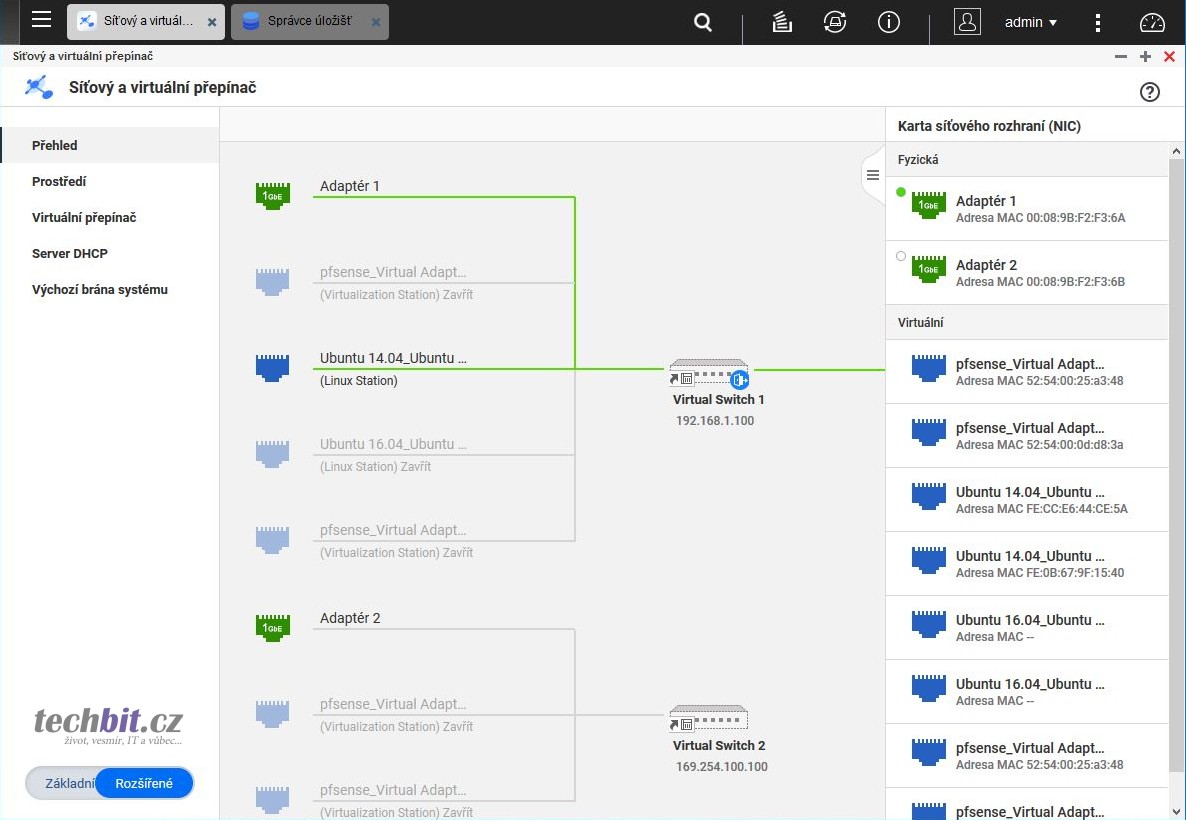 Velmi oceňuji vylepšenou práci s virtuálními přepínači. V nastavení totiž přibylo tlačítko pro rozšířené možnosti konfigurace a lze toho teď o něco více nastavit. Jestli si na svém Qnapu hrajete s virtualizací, možná se budete divit, jaký nepořádek máte ve virtuálních síťovkách.