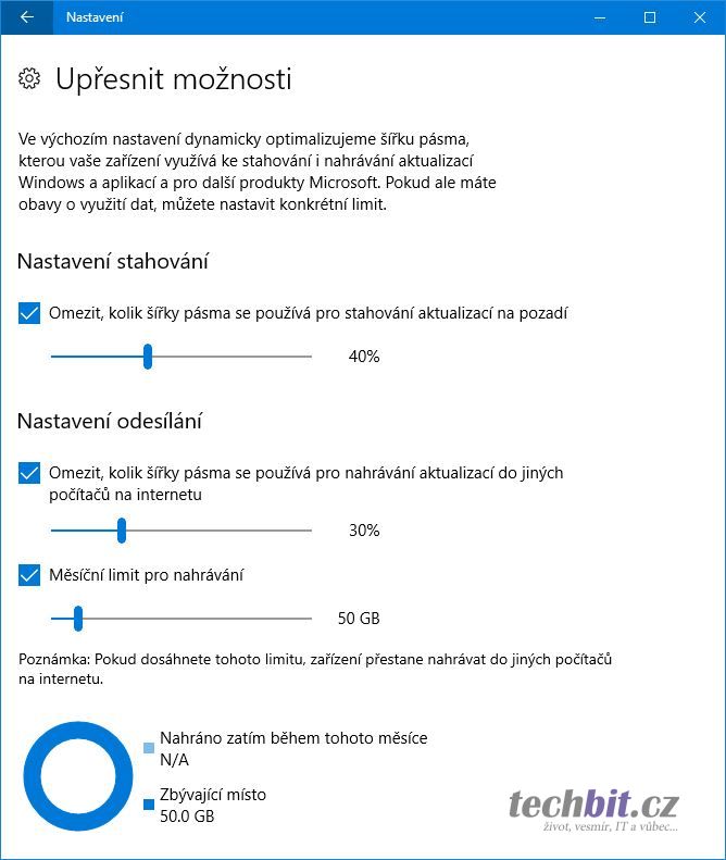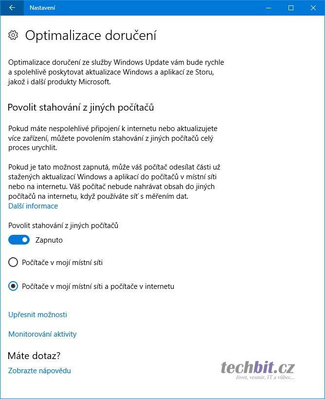 Aktualizace a zabezpečení > Windows Update > Upřesnit možnosti – jen pro pořádek, volba pro automatické dokončení aktualizací s využitím vašich přihlašovacích údajů se správně zařadilo do Účty > Možnosti přihlášení. Došlo k přejmenování větví aktualizací. Current Branch je nově Pololetní kanál (cílený) a Current Branch for Business je nyní jen Pololetní kanál. Naštěstí je to dostatečně vysvětleno v popisu. To důležité se skrývá ve volbě Optimalizace doručení. Tato funkce dostala další možnosti a stává se již použitelnou, protože je možné mít pod kontrolou, co vlastně dělá a mít nastavené limity pro sdílení aktualizací do počítačů v internetu.