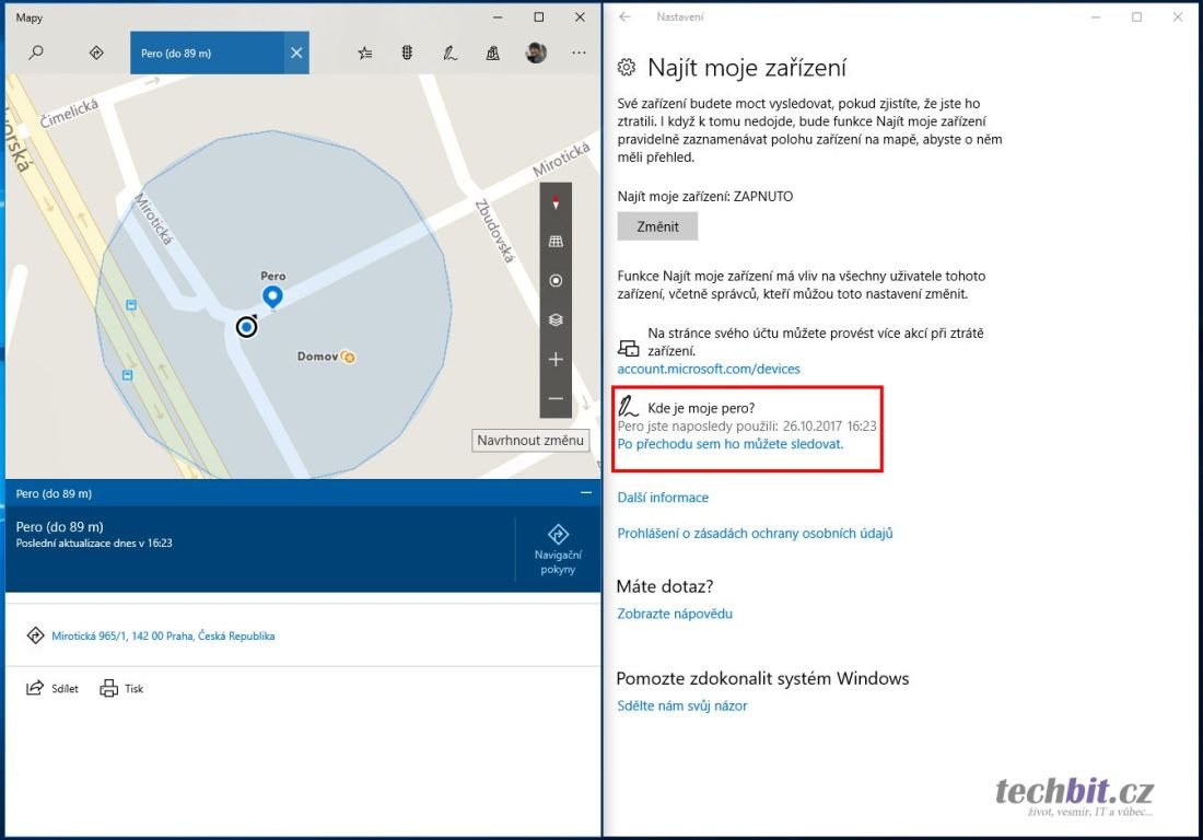 Aktualizace a zabezpečení > Najít moje zařízení – funkce najít své zařízení je ve Windows 10 asi od začátku, ale nejsem si jist, zda tam byla také funkce najít pero. Takže když někde své pero náhodou zapomenete, Windows vám ho pomůže najít.