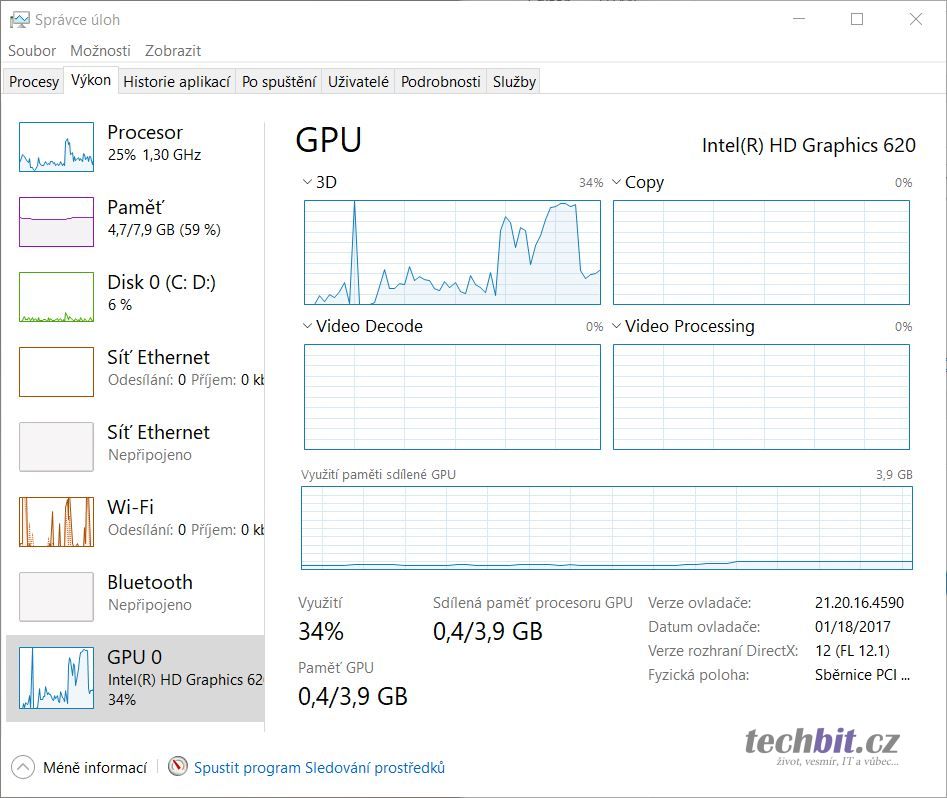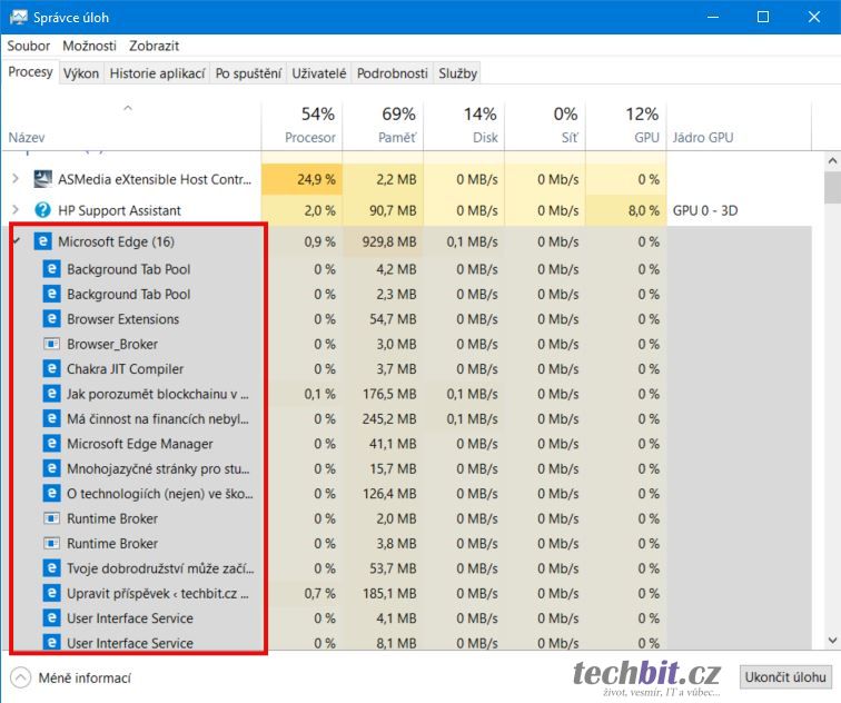 Task Manager nebo česky Správce úloh se mění jen velmi pomalu. Výrazný posun zaznamenal již před lety s příchodem Windows 8. Poslední aktualizace Windows 10 přidává možnost monitorovat grafickou kartu (GPU). Používal jsem pro to vždy šikovnou utilitu GPU-Z, která tedy stále nabídne více informací. Ale pro jednoduchý přehled vytížení grafického jádra již stačí obyčejný Správce úloh. Prohlížeč MS Edge nyní umí ve správci úloh zobrazit a pojmenovat jednotlivé spuštěné procesy.