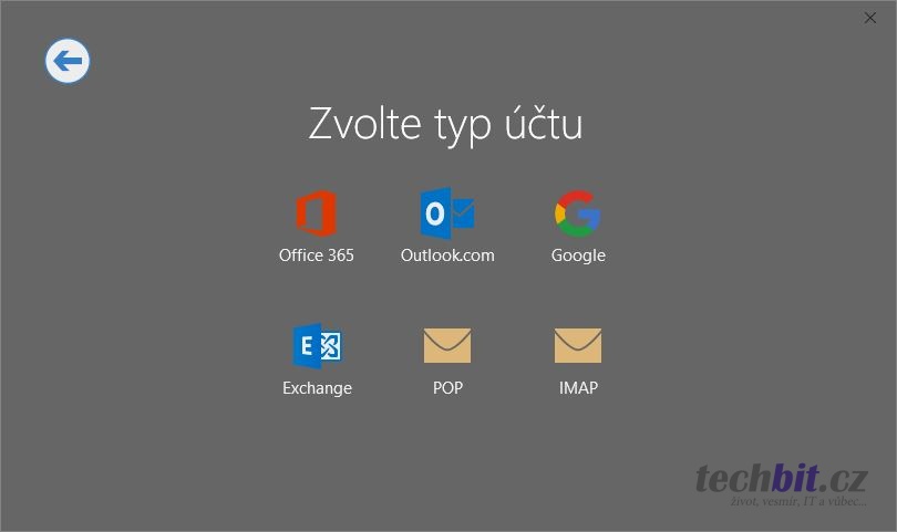 Ukázka původního průvodce přidáním účtu: