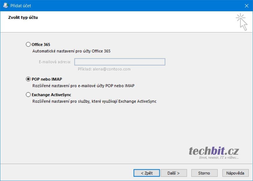 Outlook 2016 znovu zapněte a při přidání nového účtu je původní průvodce.