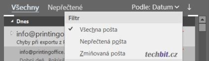 Novinkou lednové aktualizace kancelářského balíku Office 2016 jsou další možnosti třídění pošty pro uživatele, kteří nepoužívají funkci prioritní pošty. Přibyl filtr nepřečtených zpráv nebo vyhledání pošty, kde byl uživatel zmíněn.