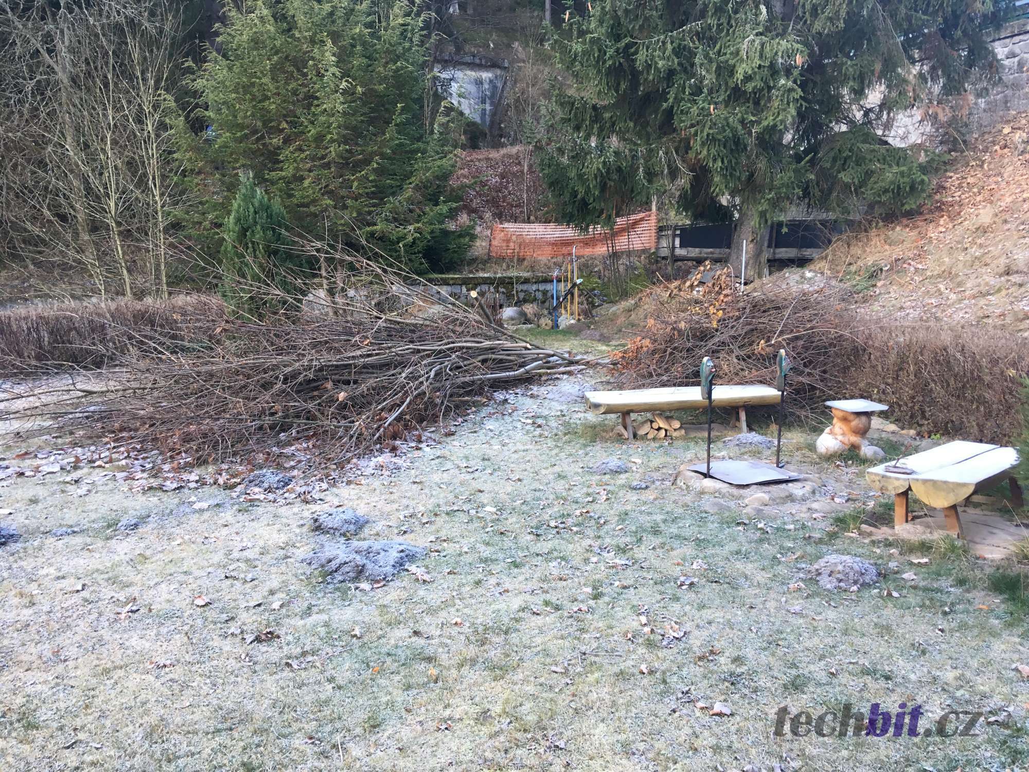 Na podzim minulého roku jsem si udělal malou brigádu na chatě. Stráň vedle chaty již nějakou dobu dost zarůstala. Přírodní sukcese pracuje na plné obrátky a vyšší stromy by mohly ohrozit stavbu. Nemají tam kvůli mělkému kamenitému podloží možnost pevně zakořenit.