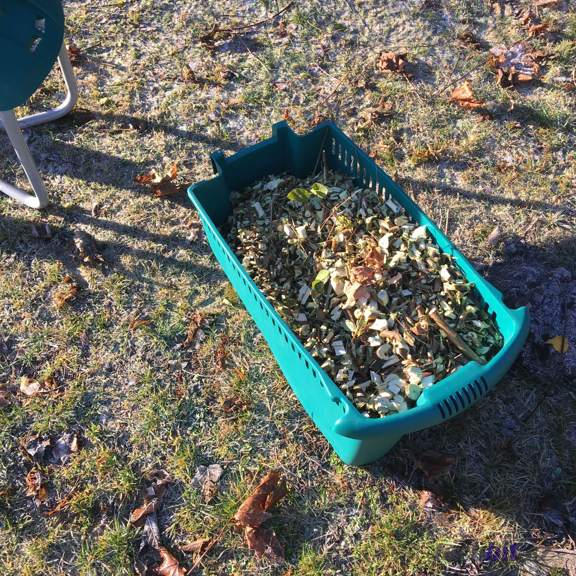 Výsledný materiál je hrubší, ale větší kousky se v ruce snadno drtí a rozpadají se. Pokud bude primární určení mulčování povrchu půdy a záhonů, tak je to plus. Bude se pomaleji rozkládat a navíc vypadá docela dobře. Hrubost výsledného materiálu také bezesporu záleží na vstupní surovině.