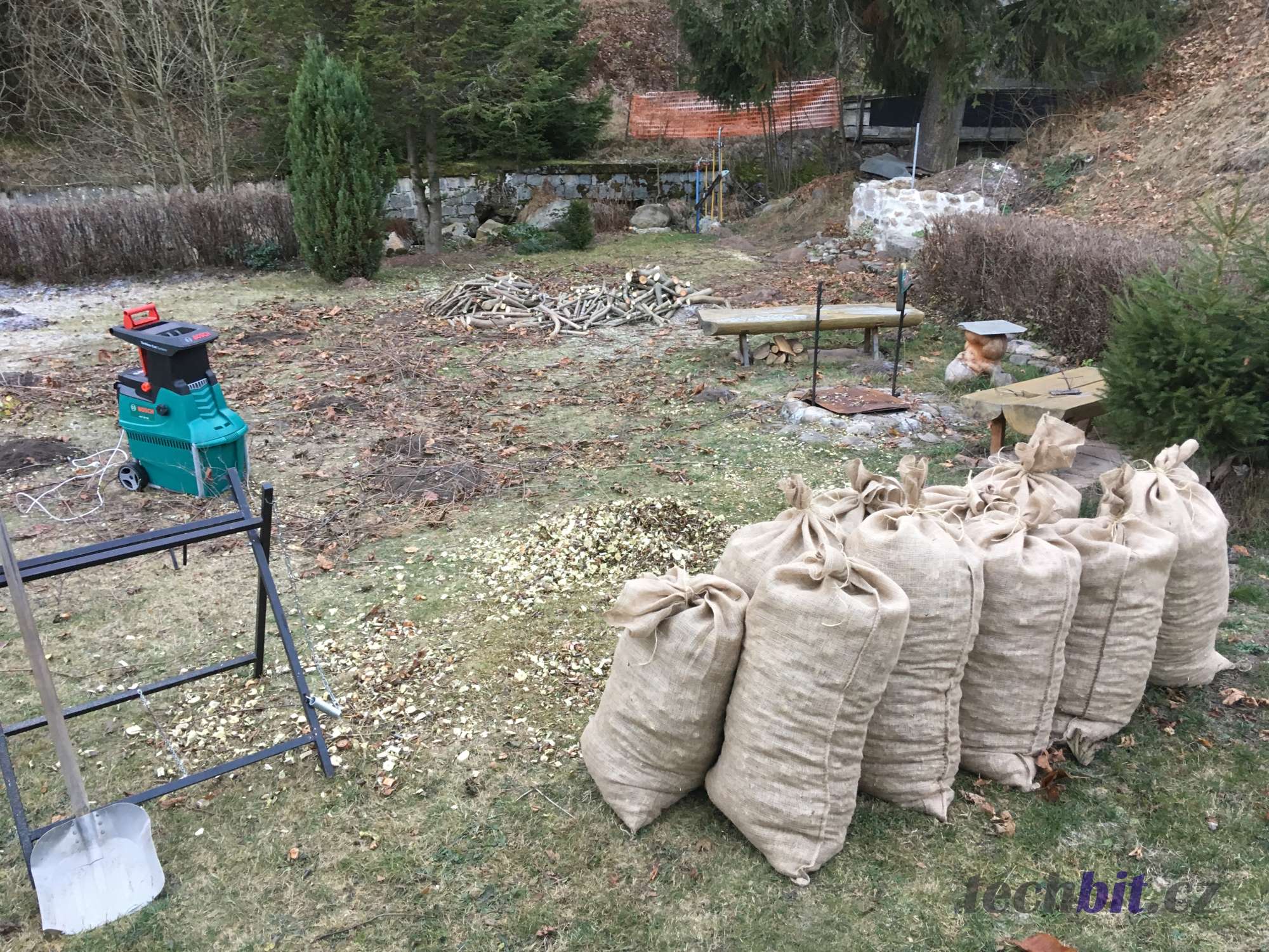 Štěpku chci použít do několika zeleninových záhonů, které letos zakládáme, zbytek na mulčování a do kompostu. Už teď vím, že deset pytlů bude málo a zase brzy pojedu někam na brigádu s tím zeleným chroupalem. Jak se dřevěná štěpka osvědčí v praxi, zkusím napsat někdy v budoucnu.