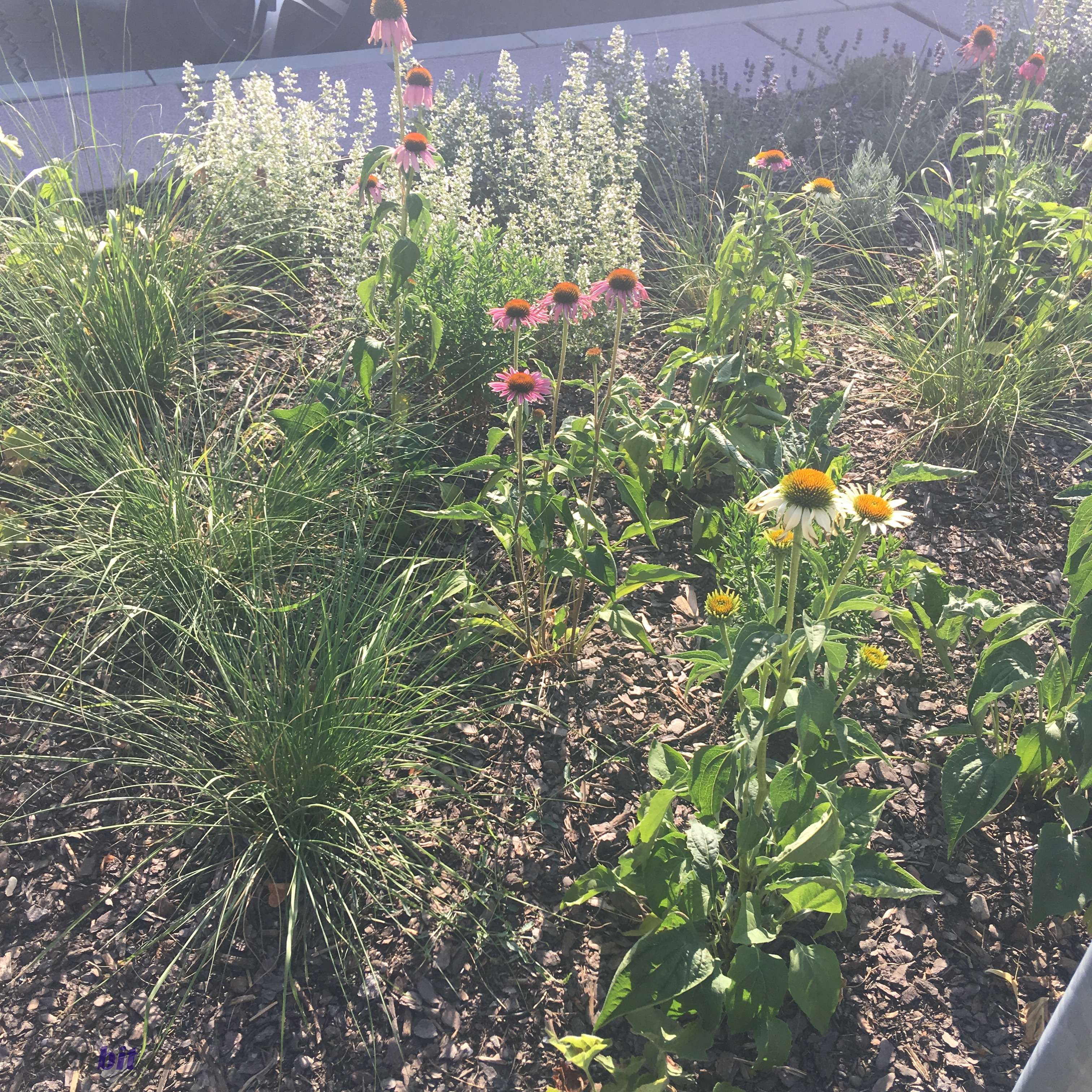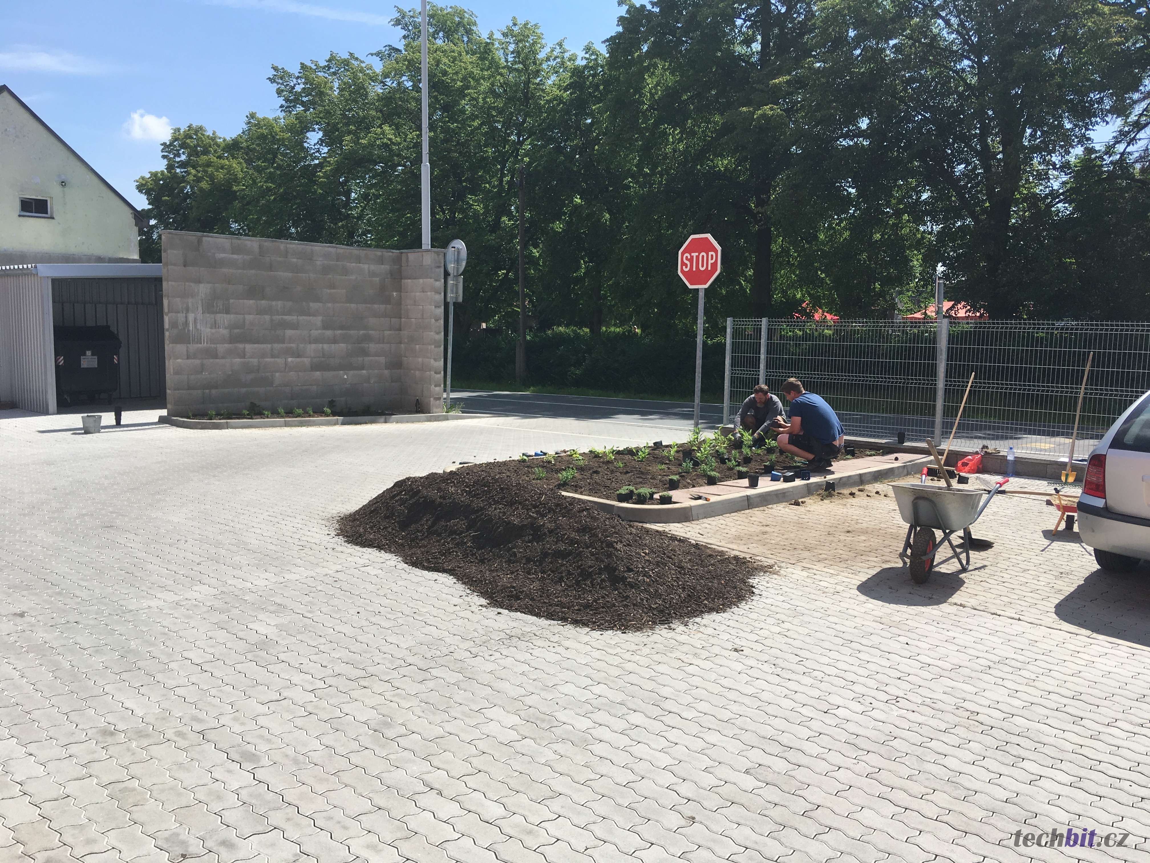 Domluvil se termín a kdo měl čas, přišel si rýpnout do země rýčem, zaházet si lopatou, zasadit a zalít pár kytek. Květiny jsou na stanovišti již dva měsíce a závlahu chtěly jen ze začátku. Řeknou si o ni, jen když bude opravdu extrémní a dlouhodobé sucho. Jak je to možné? Mulčujeme! Půda nezůstala na žádném místě holá, je pokrytá několika centimetry mulčovací kůry a ta zabraňuje výparu vody.