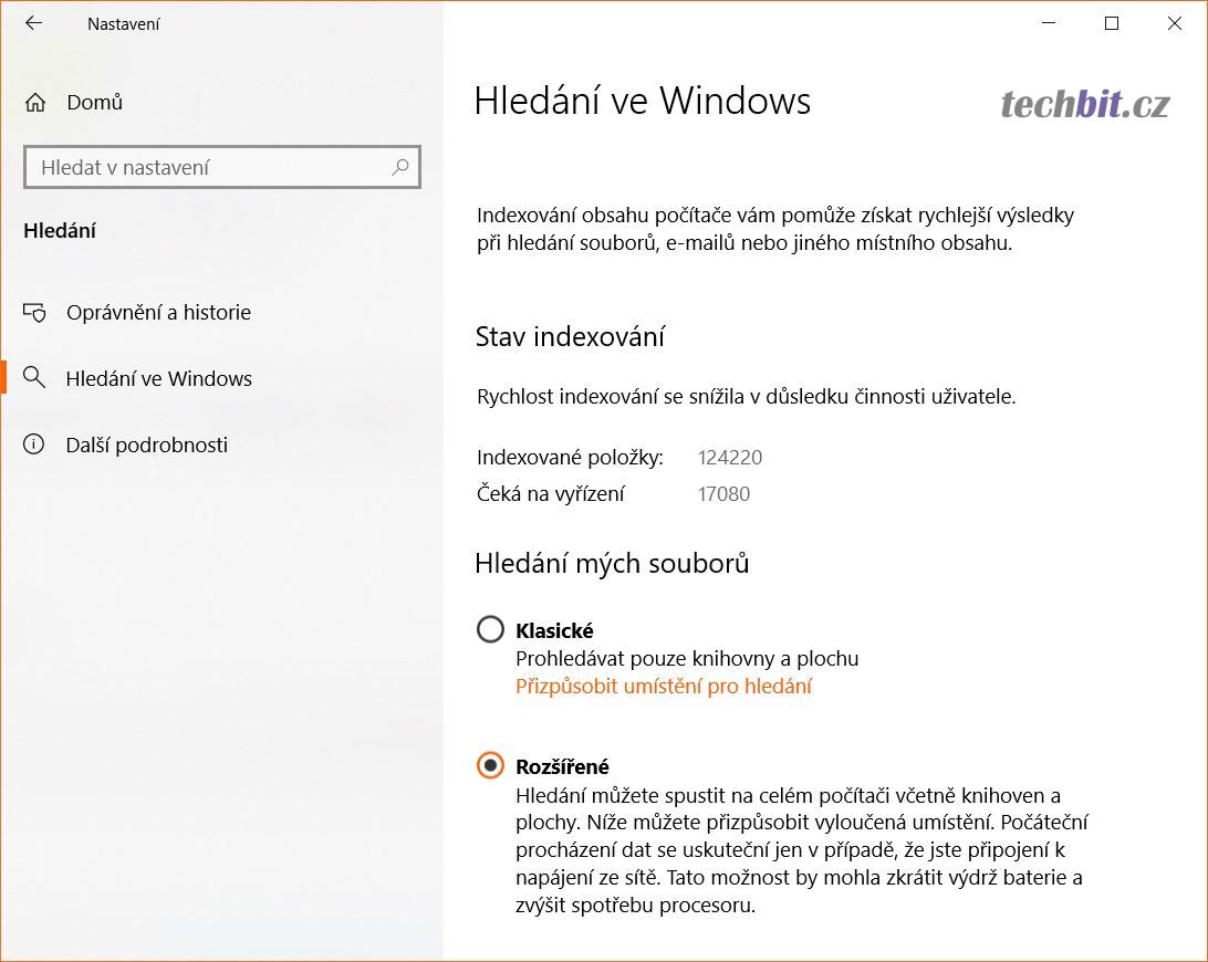 Přes start můžete vyhledat všechna indexovaná data. Jen tomu chce trochu pomoci v Nastavení > Hledání > Hledání ve Windows a zvolit Rozšířené.